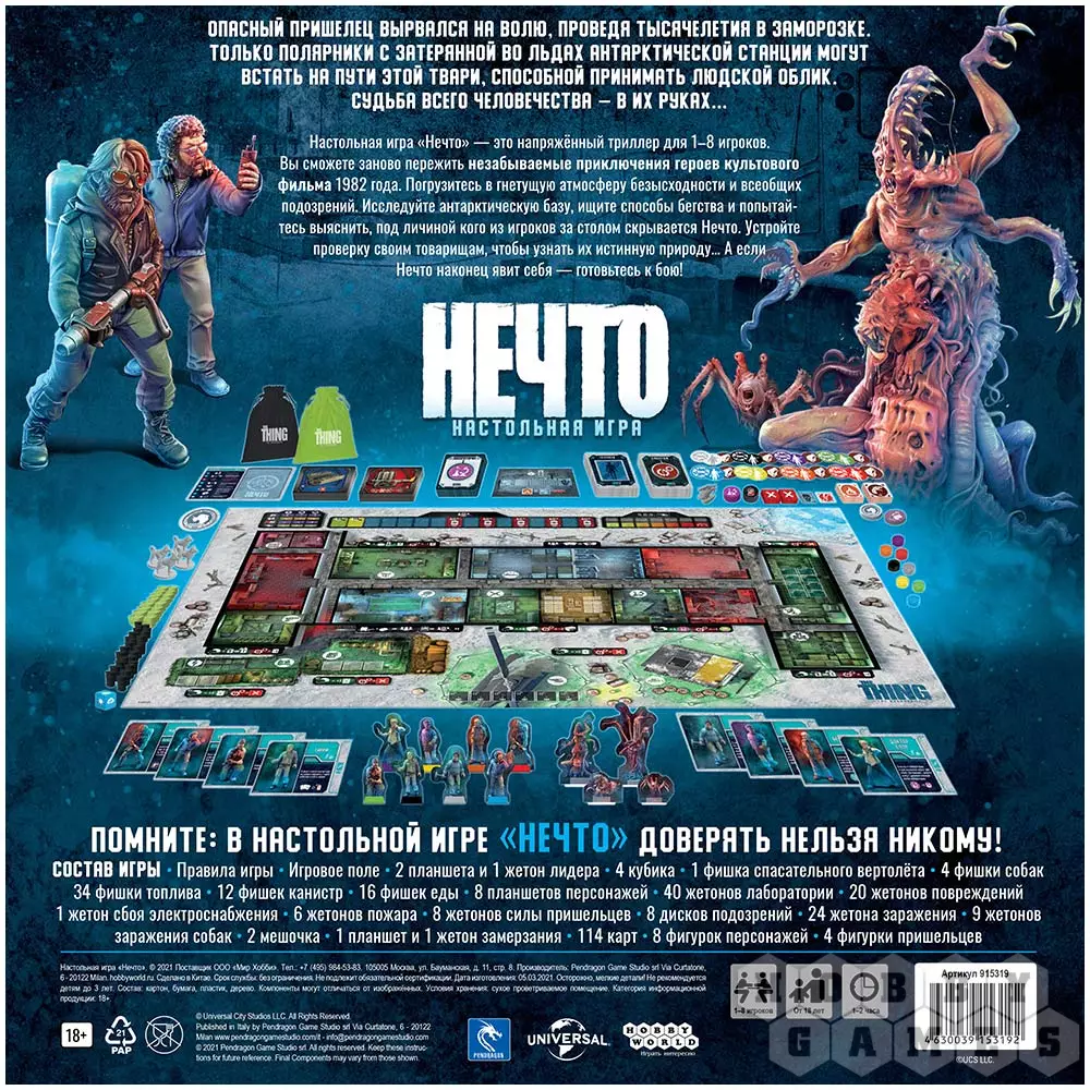 Александр02.05.2022 12:24Получилась отличная игра, правила доступны для понимания. Возможно для Нечто в первых партиях будет сложновато определиться со начальной стратегией (так как есть разные варианты достижения своей цели), но думаю, что впоследствии опытный игрок за Нечто станет достаточно сложным соперником для остальных. Первые пробы прошли в компании из четырех человек, всем зашло на отлично, хватает общения, взаимодействий, масса фана, реиграбельна на 100%. Относительно необходимости в миньках - вопрос предпочтений, по крайней мере игровой процесс (если их у вас не будет) хуже точно не станет! Преполагаю, что вшестером играть еще веселее, поэтому буду готовить компанию!))