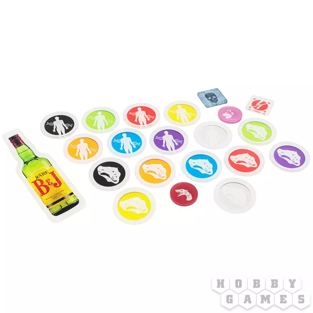 Набор жетонов для игры "Нечто" – Tokens Set 1. В нём вы найдёте 36 жетонов из плексигласа, выполненные на высоком уровне: жетоны заражения, замерзания, сбоя электроснабжения, а также необычный жетон лидера, сделанный в виде бутылки виски. Если вам хочется обновить компоненты игры, то этот набор точно для вас!