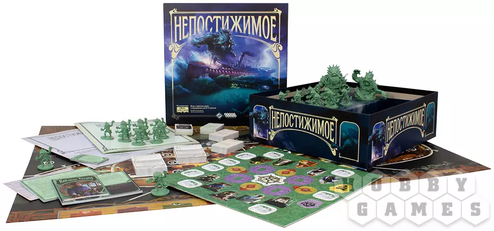 "Непостижимое" – это настольная игра, созданная по мотивам лавкрафтовских мифов в стилистике "Ужаса Аркхэма" и на основе легендарной Battlestar Galactica. В этой командной игре со скрытыми ролями пассажиры противостоят лезущим из моря чудовищам, которых возглавляют Отец Дагон и Мать Гидра, одновременно вычисляя притаившихся на борту культистов-гибридов.