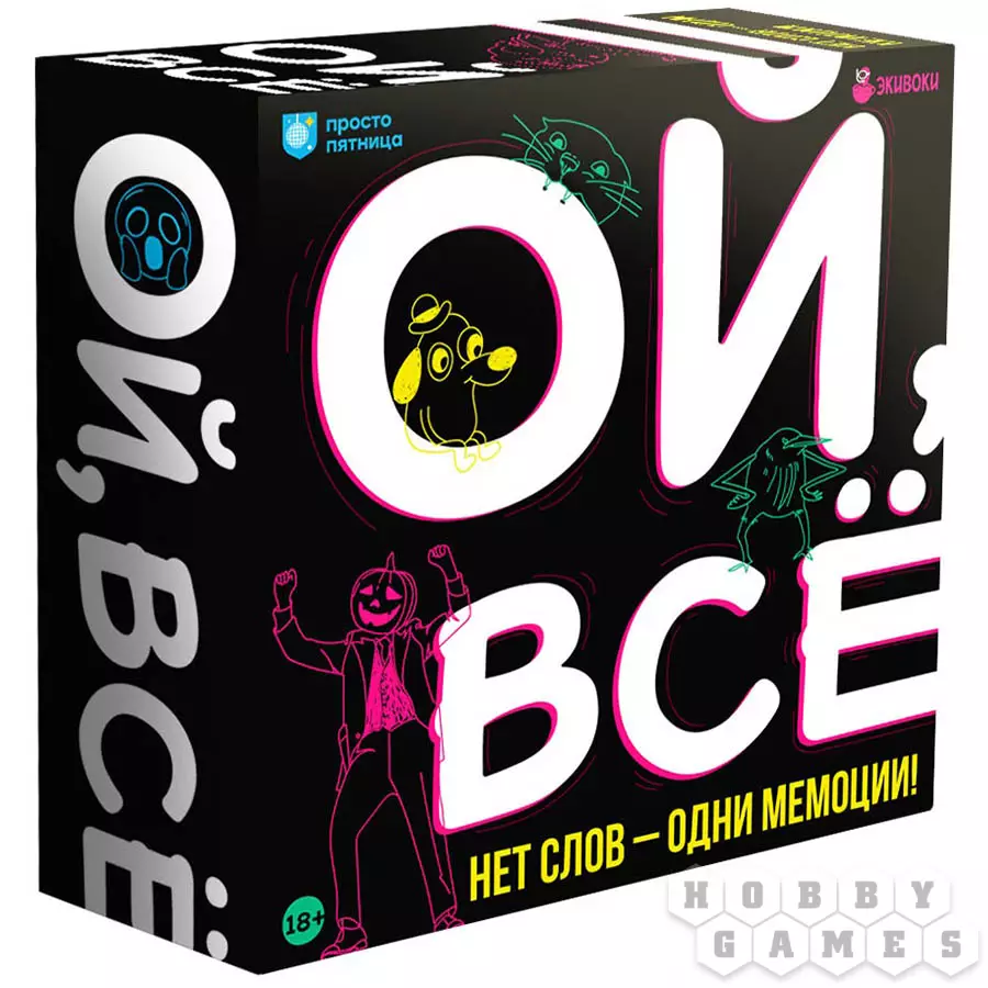 Механика игры проста и понятна каждому, кто играл в мемы. Однако, "Ой, всё!" значительно глубже и многограннее. На игровом столе размещаются 16 карточек с известными мемами, а игроки используют двойные фишки для отслеживания своих очков и силы совпадения эмоций. Дальше всё просто: каждый участник берёт карточку с ситуацией, читает её вслух и выбирает мем, который наиболее точно отражает его реакцию. Если ответы совпадают, пара перемещает свои фишки вперед по дорожке эмоций. Узнайте себя и друзей с новых сторон, и возможно, найдите свою родственную душу!