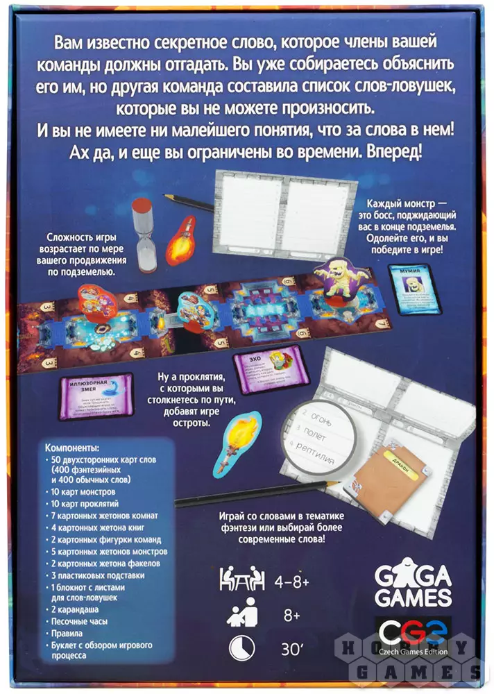 В игре будут соревноваться две команды, которым нужно выбраться из запутанных катакомб. Пройти каждую из локаций можно одним способом – отгадать кодовое слово. В процессе отгадывания нужно будет не только пораскинуть мозгами, но и избежать слов-ловушек от команды соперников, которые озвучивать категорически воспрещается. Ну а в конце подземелья вас будет ожидать невероятная встреча с боссом – монстром, которого можно одолеть, лишь отгадав сразу 10 кодовых слов. Одна неловкая фраза – и вы остались в катакомбах ещё на один ход.