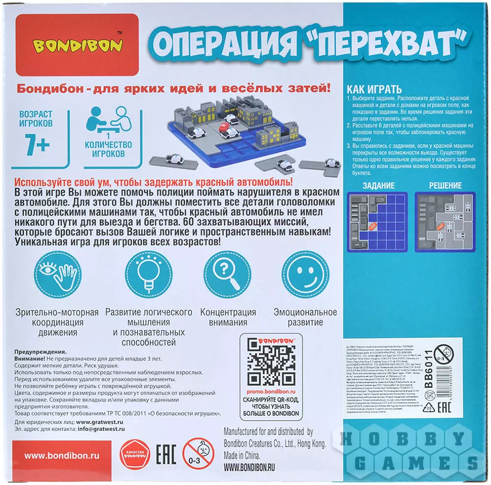 Перед вами игра-головомка, которая с лёгкостью обучает, развивает, и, разумеется, развлекает юные пытливые умы! Вам не понадобится искать соперника, ведь игра предназначена для одного, но головоломку "Операция "Перехват"" также можно решать вместе с друзьями. Всего в игре содержатся 60 заданий четырёх разных уровней сложности – от самых лёгких к максимально сложным. Благодаря компактному размеру головоломки, вы можете начать игру где угодно и когда угодно.