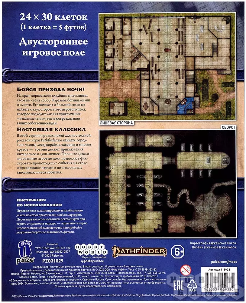 В самом дальнем углу корвосского кладбища расположился собор Фаразмы, что является богиней жизни и смерти. Комнаты этого собора и склеп под ним – вот то, что предстоит исследовать отважным героям. Эти локации вы и найдёте с двух сторон этого игрового поля, которое подходит не только для приключения "Закатные тени", но и для реализации ваших задумок.