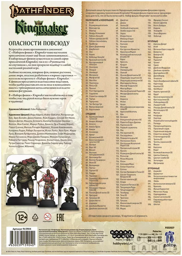 В далёких землях фэнтезийного мира Pathfinder, где магия переплетается с древними легендами, а герои и чудовища каждый день сталкиваются в эпических сражениях, появился набор фишек, способный сделать ваши настольные приключения ещё более захватывающими и незабываемыми. Этот набор идеально подойдёт к любой настольной ролевой игре. На них изображены герои, чьи подвиги воспеты в песнях бардов, чудовища, чьи имена внушают страх в сердца даже самых храбрых воинов. Яркие и детализированные образы перенесут вас в прямо гущу событий.