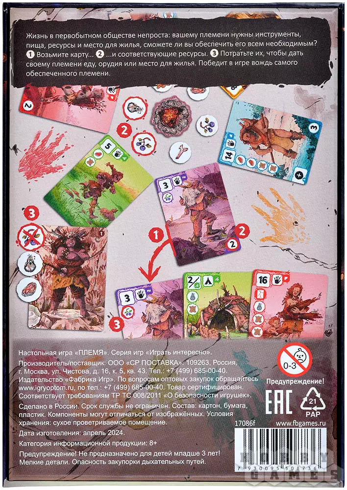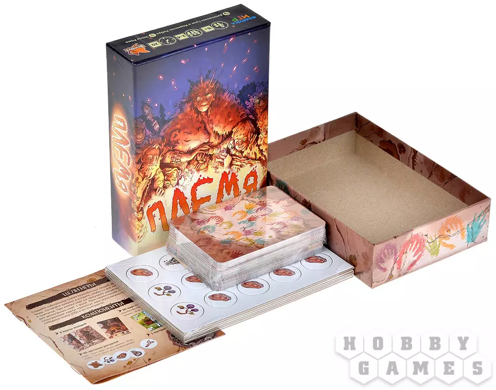 В игре “Племя” вам предстоит создать собственное племя, снабдить его орудиями труда, построить хижины и следить за тем, чтобы хватало ресурсов и припасов. Взяв карту, вы получаете необходимые для племени ресурсы, а при правильном планировании и разыгрывании карт сможете набрать максимальное количество победных очков (ПО), укрепить свои позиции лидера и одержать победу!