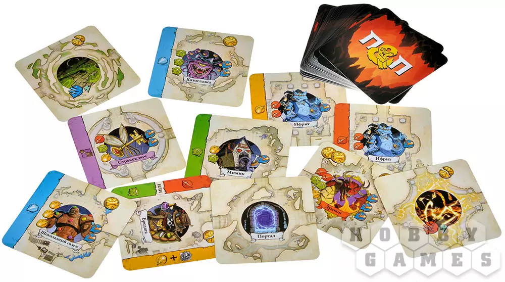 Размер карт: 69x69 мм (рекомендуются протекторы из данного раздела, 108 шт.)