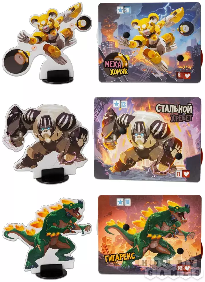 В этой версии вас ждут четыре новых монстра: Космо Джо, Гигарекс, Стальной хребет и Меха Хомяк, а ещё – 14 уникальных карт, которые добавят игрового разнообразия! Сама игра очень компактна и удобна – её можно взять с собой куда угодно и сражаться за Токио в любом месте! Готовы начать своё завоевание?