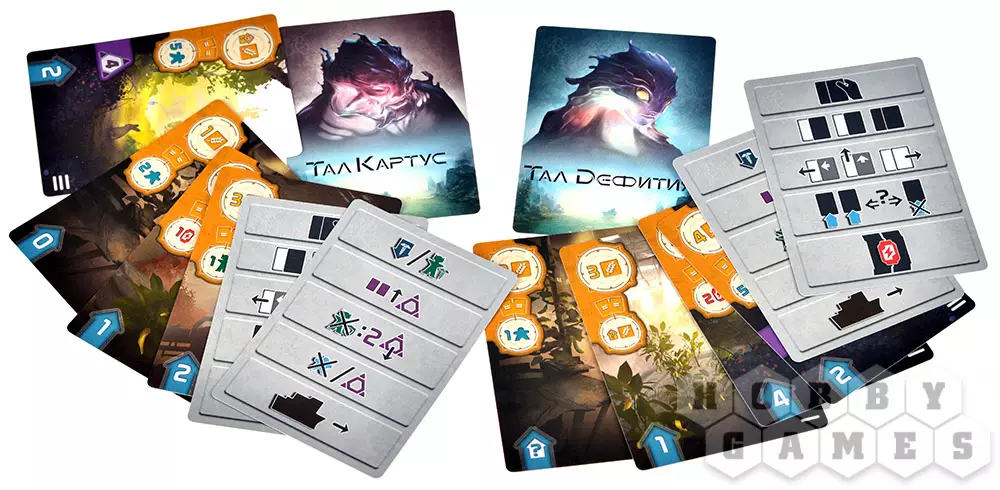 Размер карт: 63x88 мм (рекомендуются протекторы из данного раздела, 112 шт.)