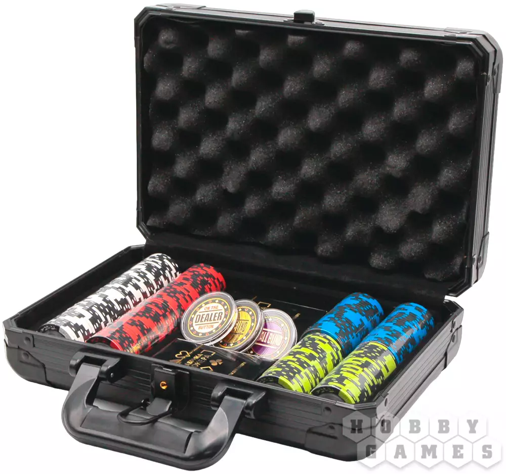 В данном комплекте вы найдёте всё необходимое для игры в классический покер. Внутри вы найдёте 200 фишек для профессиональной игры (14 г.), фишки блайндов и дилера и 2 колоды игральных карт, соответствующих качеству карт казино.