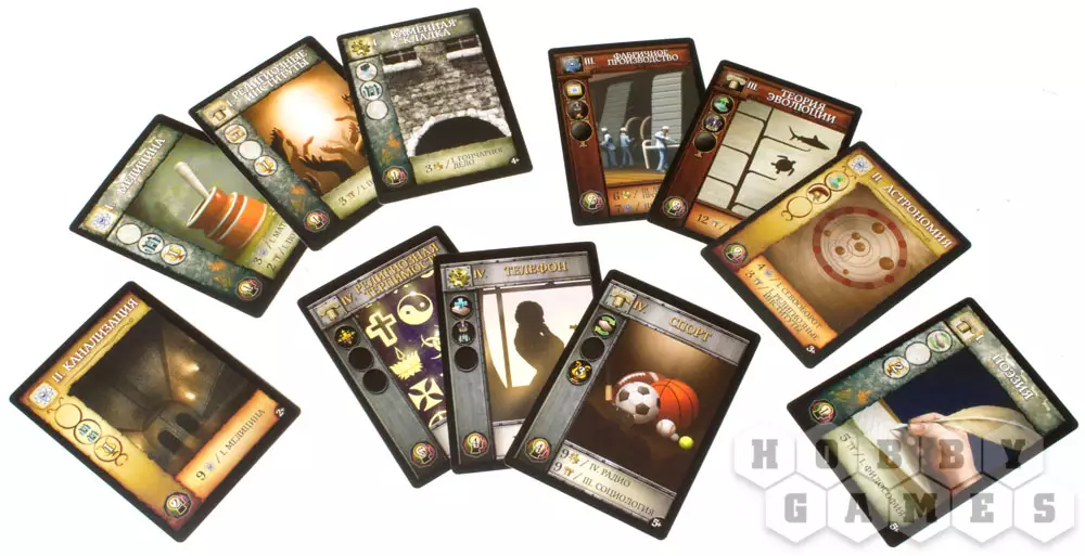 Перед вами одна из самых интересных и оригинальных настольных игр про науку, технику и цивилизацию в целом. С помощью интересных и не очень сложных механик обыгрывается мировое развитие в различных важнейших сферах жизни общества. Красивый дизайн, отличное исполнение карт и высокое качество компонентов порадуют настоящих ценителей-настольщиков. Игра крайне реиграбельна, в ней очень многое зависит от ваших личных решений, в неё можно играть одному или по дополнительным ускоренным правилам. Также вы можете добавить одно из трёх дополнений, какие-либо их сочетания или даже все три разом.