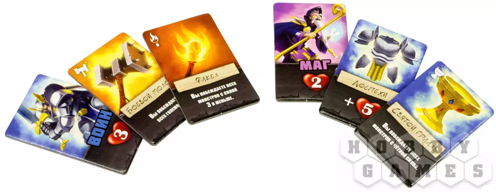 Фаза торгов – в свой ход игрок либо берёт карту из колоды монстров, либо пасует и выбывает из этого раунда. Если же игрок берёт карту, то у него есть две опции. Он может сбросить монстра и не добавлять его в подземелье, то тогда герой потеряет одну из вещей своей экипировки. Другой вариант – добавить монстра в залы, так вы будете знать, к чему стоит готовиться. Последний неспасовавший игрок и нарекается самым смелым героем. Ему и идти внутрь, подвиги совершать всякие…