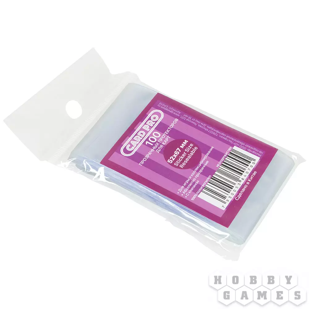 Протекторы Card-Pro Sticker Size Resealable прозрачные (100 шт., 52x67 мм) | Купить настольную игру в магазинах Hobby Games