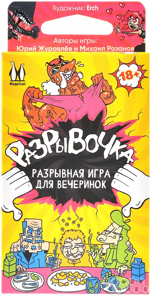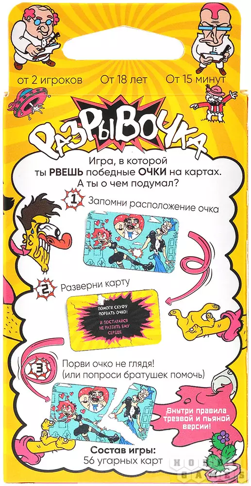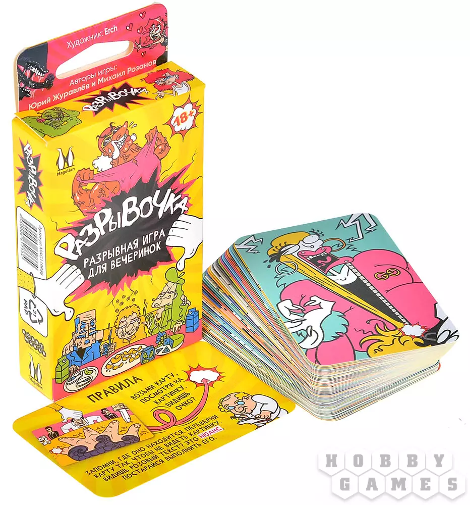 "Разрывочка" – это та самая настолка-мечта любой компании, что просто хочет хорошо провести время и от души посмеяться. Здесь вам не придётся думать – только рвать картинки и иногда выпивать (а может, и часто – всё зависит от вас и ваших действий!). Игра одноразовая, так что хорошенько рассмотрите яркие иллюстрации прежде, чем перейти к уничтожению очка: больше насладиться рисунками не получится. Ну если только вы не испытываете слабость к пазлам...