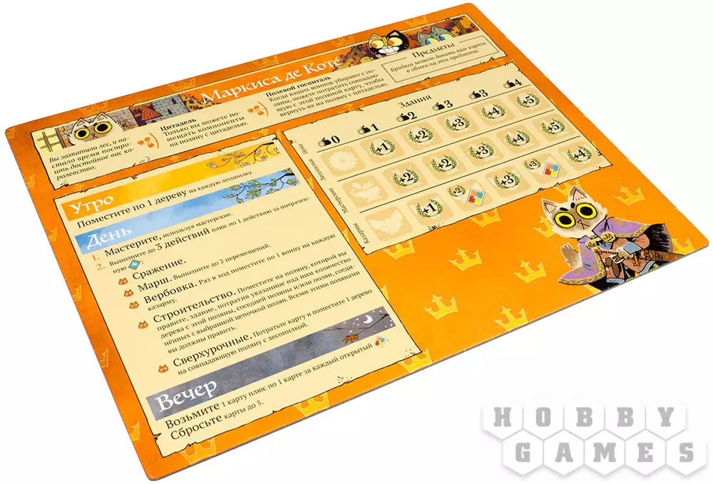 11.03.2022 15:12Здравствуйте, Виктория! По базовым правилам предполагается, что игроки должны ходить в порядке подготовки к игре, на каждом планшете на оборотной стороне есть буква. Порядок хода идёт по алфавиту (то есть Коты - Птицы - Лесной Союз - Бродяга).