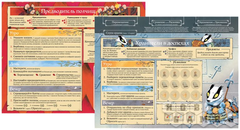 Хранители в железе – рыцарский орден барсуков, закованных в несокрушимую броню. Их не интересует власть над миром, только вечный поиск утраченных древних реликвий. Методично они создают в чаще свои форпосты и заключают тактические союзы, а их стальная защита позволяет им с минимальными потерями пробиваться сквозь самые опасные чужие территории.