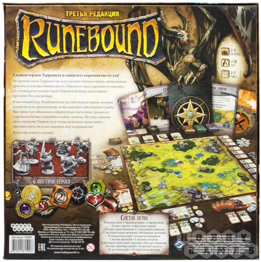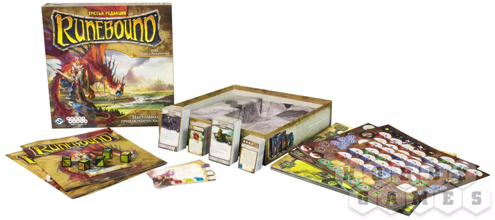 Настольная игра Runebound – настольное приключение в жанре фэнтези для 2-4 игроков, которые смогут отправиться в сказочный мир, полный опасностей и приключений. Путешествуйте по течению бушующих рек, исследуйте тёмные и таинственные леса, сражайтесь со всевозможными монстрами, которые осмелятся помешать вам достигнуть главной цели приключения! В испытаниях вам будут помогать опытные союзники и зачарованные артефакты. Вы встретите коварных злодеев и не раз окажетесь в смертельной опасности. Сумейте с честью преодолеть все преграды на пути к вашей цели!