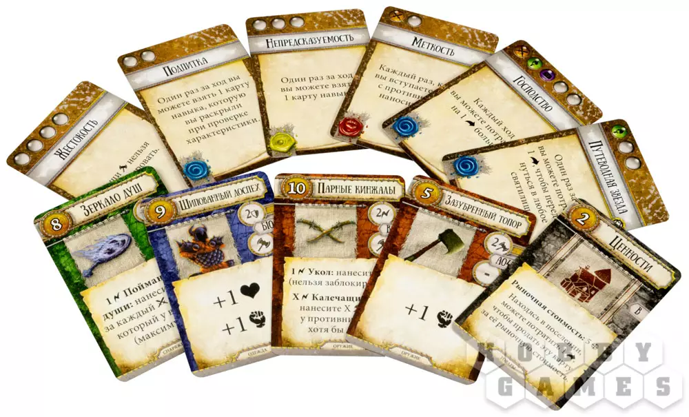- Тренировка – позволяет вам взять на руку карты навыков, сбросить лишние и оставить самые полезные. Действие полезно не только для добора карт до вашего предела, но и просто для того, чтобы ознакомиться с новыми картами и подготовиться к приключениям