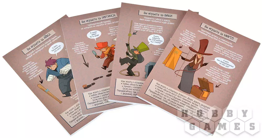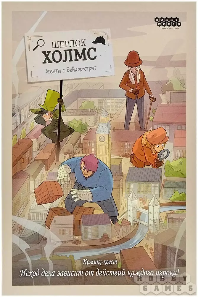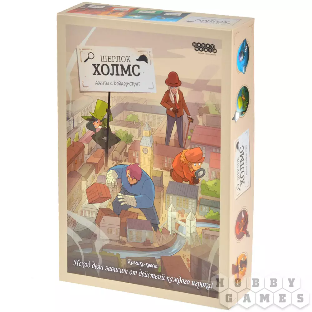 В комикс-игре "Шерлок Холмс: Агенты с Бейкер-стрит" вы примерите на себя роль одного из четырёх персонажей, каждый из которых обладает собственными уникальными характеристиками. Вам предстоит самое настоящее путешествие по улицам Лондона в поисках зацепок и улик. В коробке вас ждёт 4 комикса, каждый из которых относится к своему герою и содержит 3 дела. Их-то вам и предстоит распутать! А ещё в составе вы найдёте журнал расследований, содержащий карту города и связанный со всеми комиксами.