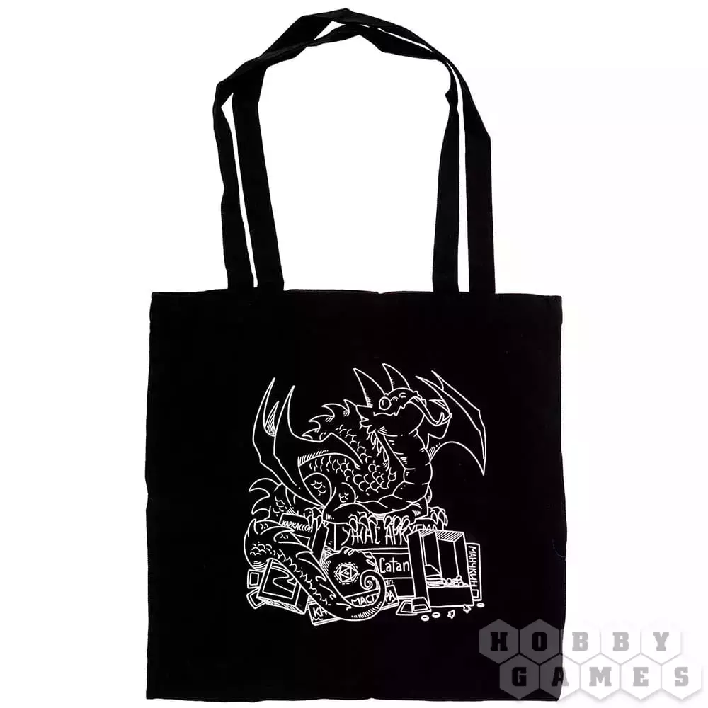 Чёрный цвет всегда в моде, а классный принт с гордо восседающим драконом, нанесённый с использованием шелкографии, завершает украшение этого аксессуара. Изготовлен шоппер из хлопка с добавлением синтетического волокна для большей прочности. Можете не сомневаться, этот красавец способен перенести в себе множество коробок!