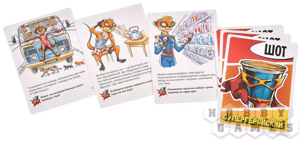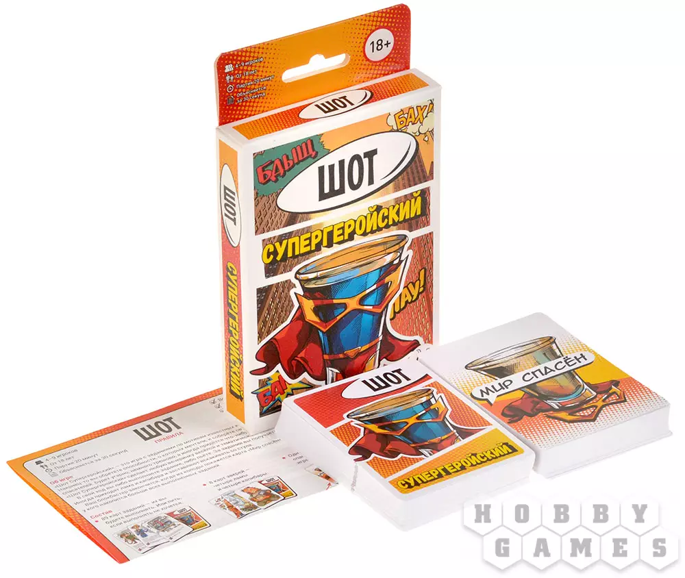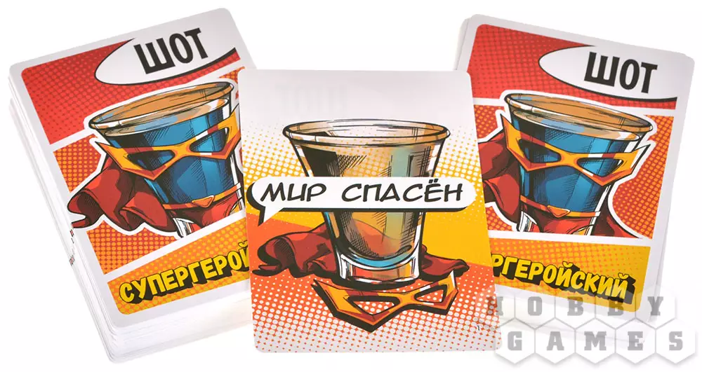 Играть в "Шот Горячительный" отнюдь не сложно, но необычайно весело! Игроки по очереди совершают ходы, вытягивая карты: на каждой описаны определённые супергеройские задания. Придётся снимать видео, танцевать и совершать всевозможные смешные действия – но делать это не обязательно. Если вы не хотите выполнять задание, вы можете выпить и передать карту игроку слева. Он, в свою очередь, тоже должен решить, выполнить задание или передать карту дальше. Карта будет переходить по кругу до тех пор, пока кто-то не выполнит её условие или пока она не вернётся к вам.