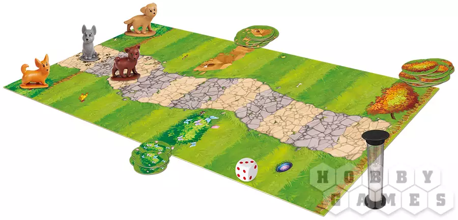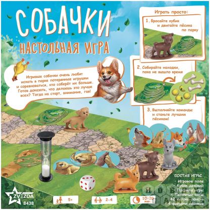 "Собачки" – это динамичная настольная игра, где вы берёте на себя роль озорной собачки, спешащей найти как можно больше жетонов с находками. Уникальность игры в её простоте и увлекательной механике: за минуту вам нужно успеть пробежать по парку, раскопать жетоны и вернуться на старт. Чем дальше от старта – тем ценнее находки! Жетоны команд добавляют веселья – вам придётся гавкать, рычать или даже "копать" руками, чтобы заработать дополнительные очки!