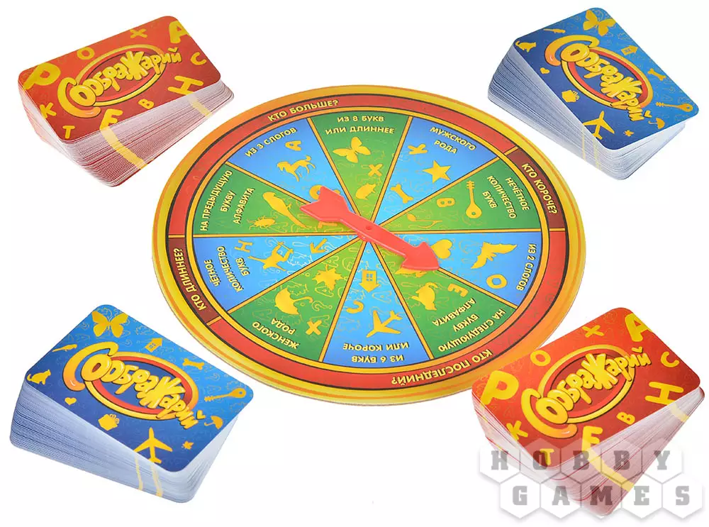 В этом издании вас ждёт уникальный игровой элемент – специальная вертушка, которая вносит разнообразие и добавляет особые условия для ответов. Выбирайте, с какой колодой играть: классической – с буквами, или более креативной – с картинками, которые нужно определить самостоятельно. Вас ждут сотни карт из хитов серии: "Соображарий", "Улётная вечеринка", "Картинки", "Турбо", "Каникулы", а также эксклюзивные карты из других тематических выпусков и множество совершенно новых заданий!