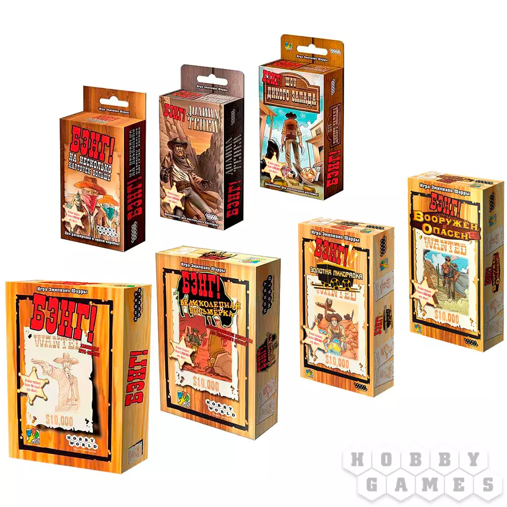 "Бэнг!" – серия настольных игр в стилистке спагетти-вестернов: бандиты охотятся на шерифа, его помощники стараются не допустить насилия над начальством, а ренегатом двигают личные мотивы. Каждый игрок получает свою уникальную роль и персонажа, но, как в "Мафии", роли скрыты от других игроков, на виду лишь игрок за Шерифа. Чтобы красиво разыграть свою роль, придётся постараться не раскрыть свою и быстро разгадать, кто есть кто. Но вот хватит ли времени или вас пристрелят раньше? Набор "Быстрый стрелок" поможет разобраться в этом!