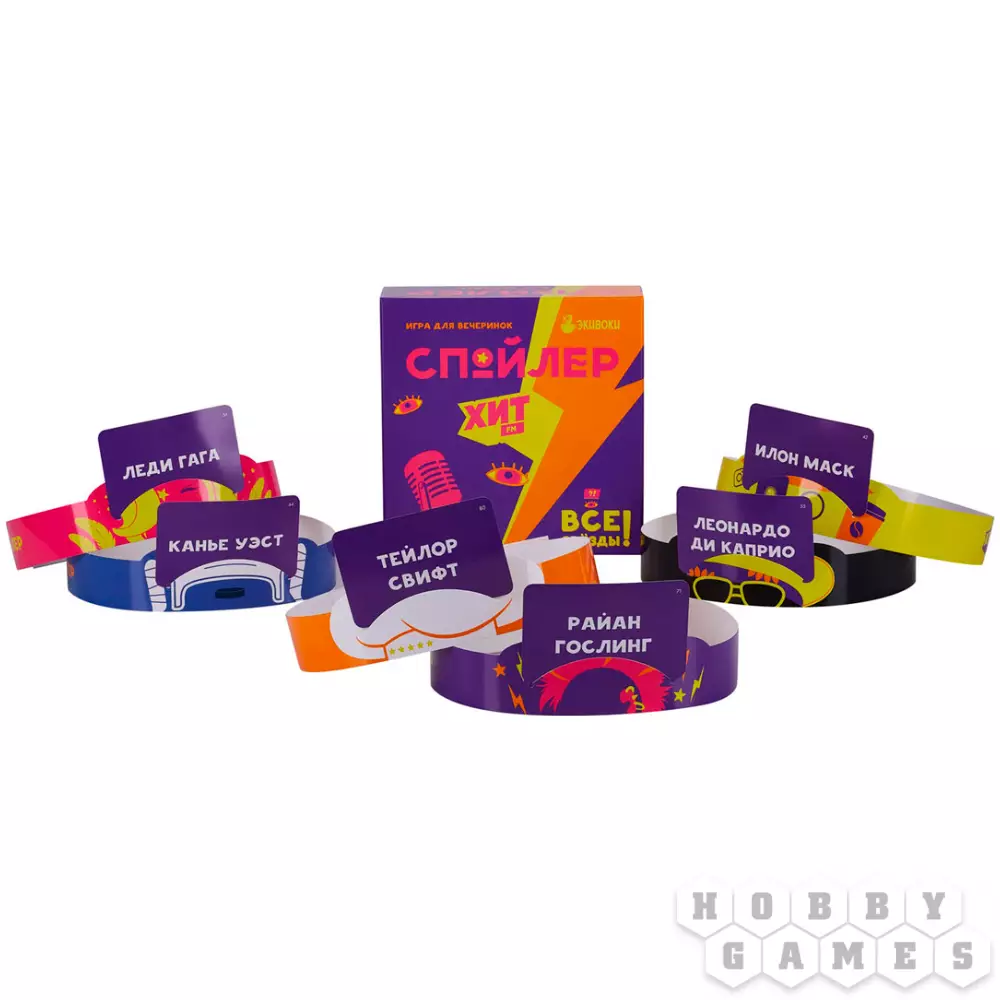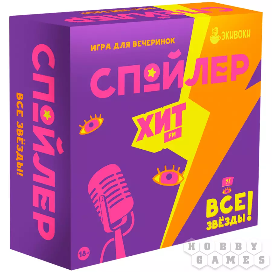 "Спойлер. Все звёзды" – это новая вечериночная игра из серии "Спойлер", созданная в сотрудничестве с Хит FM и посвящённая различным селебрити. Как хорошо вы знаете звёзд шоу-бизнеса? Сможете представить их в тех или иных ситуациях и победить? Правила игры невероятны просты: возьмите ободок, вставьте в него карточку, на которой написано имя какой-то знаменитости, и приступайте к отгадыванию – а для этого придётся внимательно слушать правдивые, но жутко каверзные ответы других игроков на зачитанные вами вопросы! Победителем в номинации "Эксперт звёздного мира" станет первый, кто отгадает трёх своих персонажей!