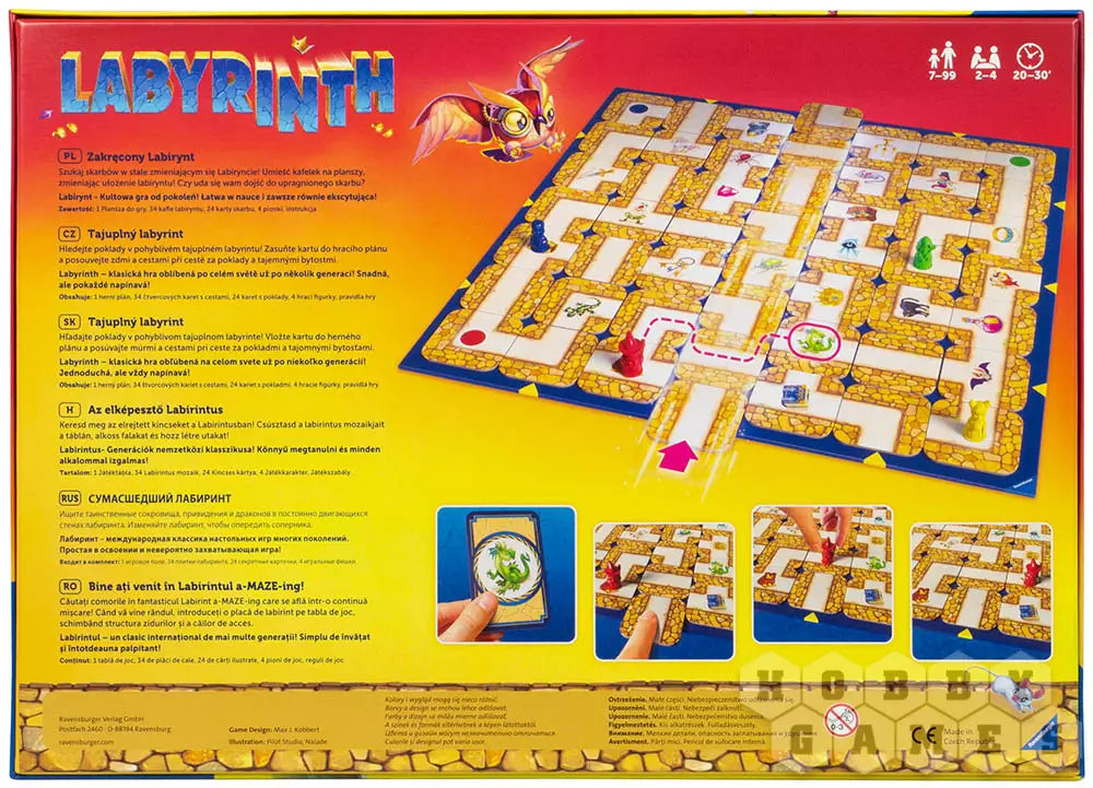 Развивайте свою логику и пространственное мышление вместе с настольной игрой «Сумасшедший лабиринт». Каждая партия игры будет уникальна, благодаря меняющемуся игровому полю и целям игроков, и не даст заскучать даже самым опытным волшебникам. Игра будет интересна и занимательна не только детям с семи лет, но и взрослым, а значит, вы сможете смело собираться семейной компанией за «Сумасшедшим лабиринтом»!
