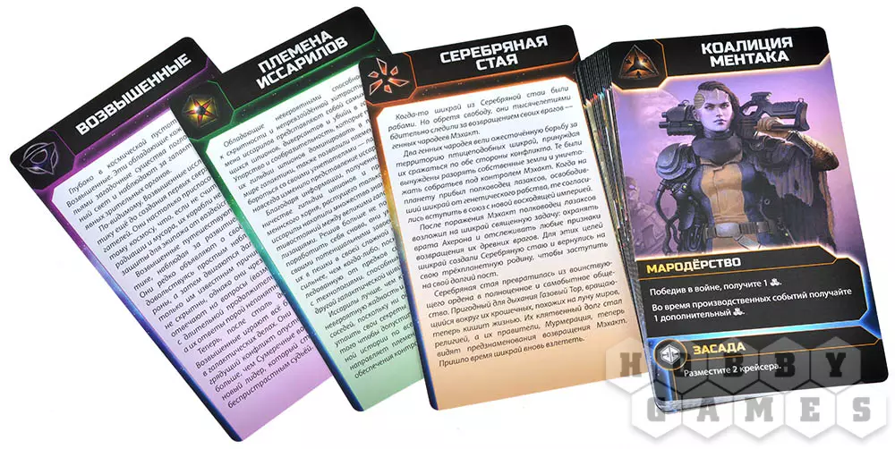 Военные – отражают напряжение между фракциями. Когда такая карта раскрыта, игроки разыгрывают войну против каждого своего соседа