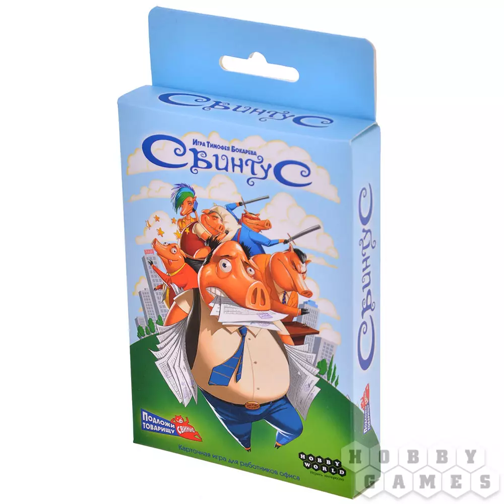 Настольная игра "Свинтус" – это весёлая и быстрая карточная игра для любой компании от 2 до 10 человек. Игра подойдёт детям, но в неё интересно играть и взрослым. В неё можно играть дома, в кафе или в дороге – "Свинтус" прекрасно скрасит ваш досуг. Простые правила, яркий и милый дизайн, динамичный игровой процесс – эти особенности превратили "Свинтуса" в настоящий хит! Хотя сама игра и полностью карточная, тем не менее в ней вам пригодятся даже такие навыки, как хорошая реакция, рефлексы, внимательность и память. Ну и, конечно, компания товарищей, готовых как следует поразвлечься!
