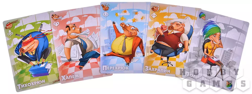 "Тихохрюн". Данная карта – лучший подарок для тех, кто устал от постоянного офисного гула. Если кто-либо из игроков выкладывает эту карту, то до тех пор, пока он не выложит снова карту в свой следующий ход, все игроки должны сохранять полное молчание, а любой нарушитель правила снимает данный запрет раньше положенного, но при этом тянет две карты