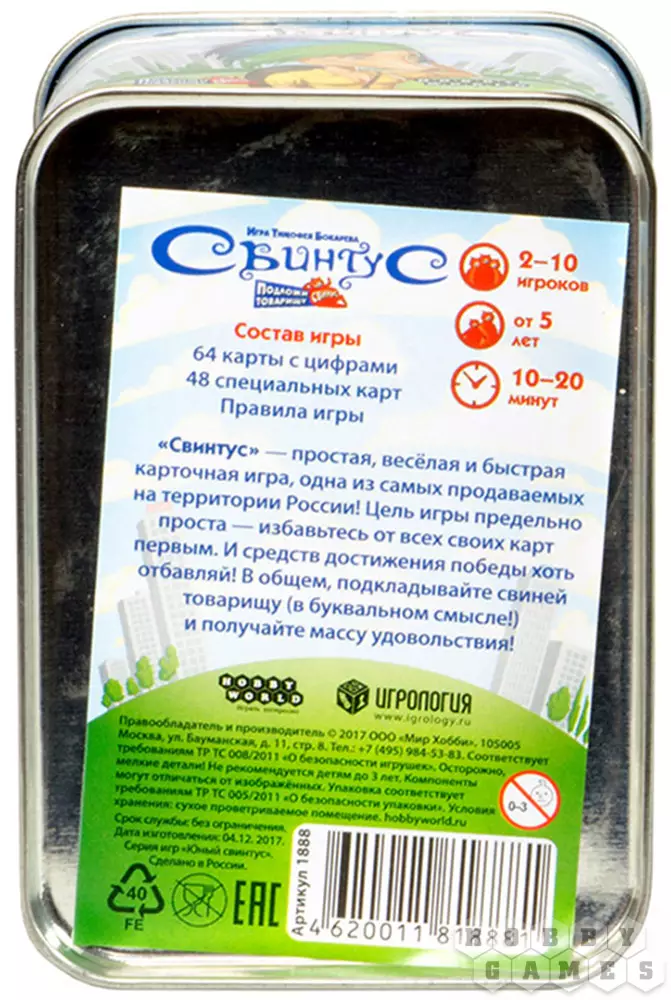 Яузина14.01.2021 20:53Очень любим играть в Свинтус, игра понятная для детей и самое главное интересная для взрослых! т.к. играть в обычные бродилки-ходилки с детьми скучно. А в Свинтус и взрослым весело)) удобная коробка для хранения игры. Отлично подойдет на подарок. -