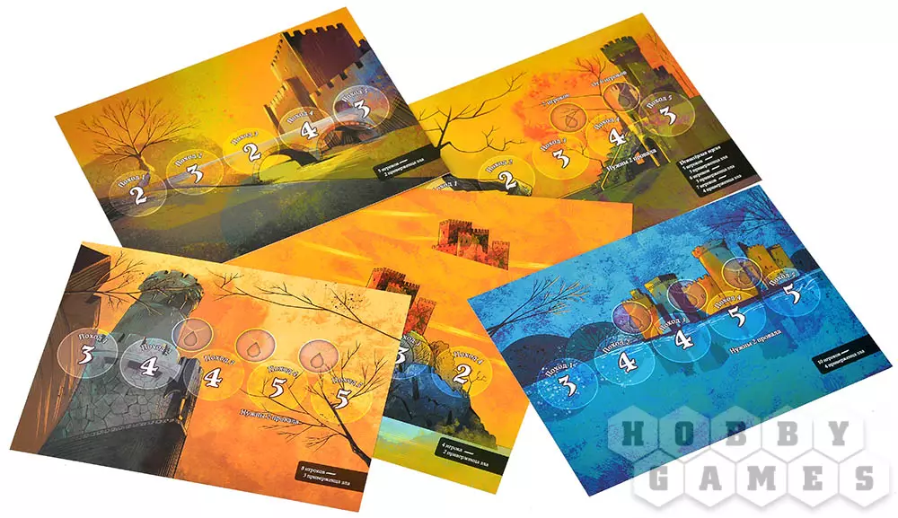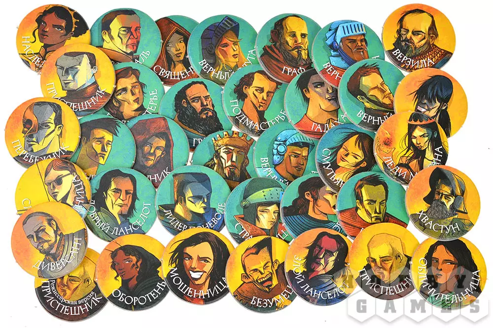 Наконец, завершающая фаза раунда – фаза передачи лидерства. Старый предводитель выбирает нового. Лидером не может стать тот, кто уже им был. В игре на шесть и более игроков также передаются амулеты, позволяющие проверять верность участников.