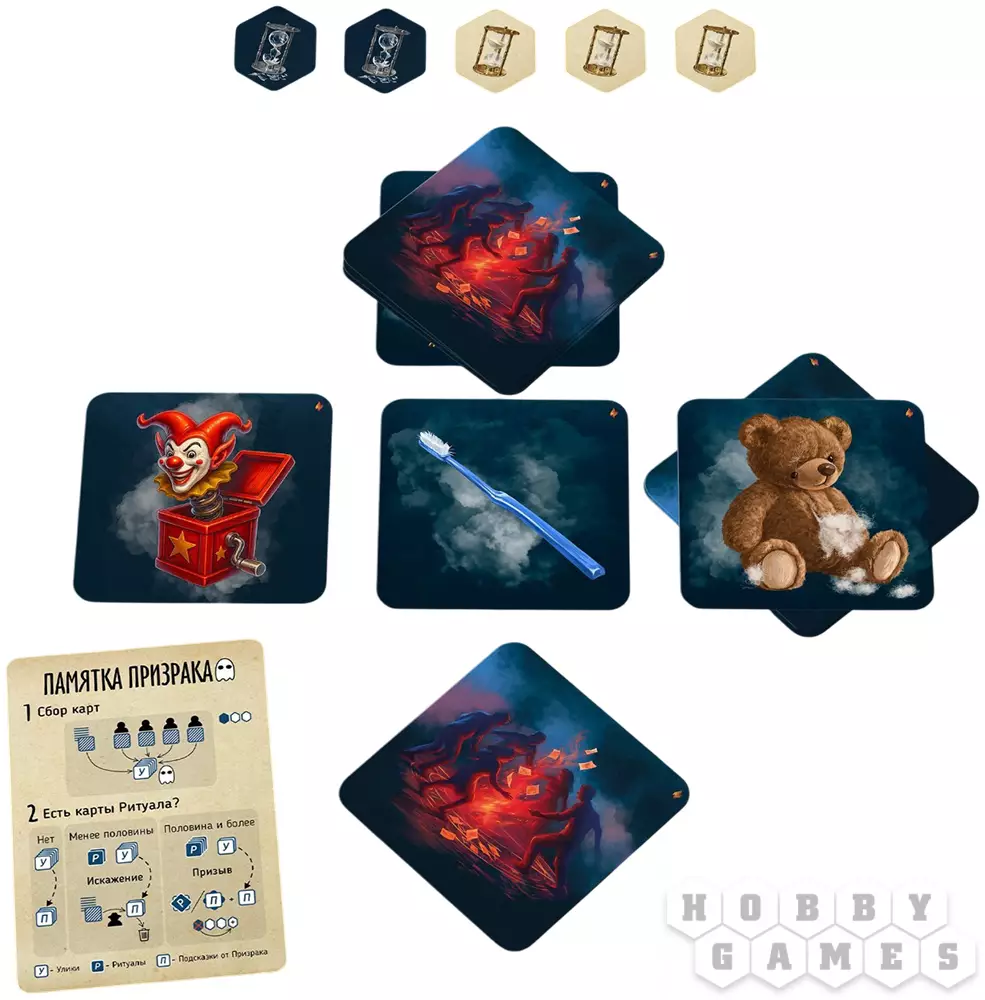 Новые компоненты – маска Призрака, жетоны раундов и сброса – делают игру ещё более напряжённой и удобной. Но главное нововведение – это карты Ритуала. Теперь, отправляя улики молчаливому Призраку, вы можете вплетать в расследование элементы древнего обряда. Успешный ритуал подарит вам ясные подсказки, но если вмешаются представители зла, произойдёт опасное искажение, которое способно завести следствие в тупик.