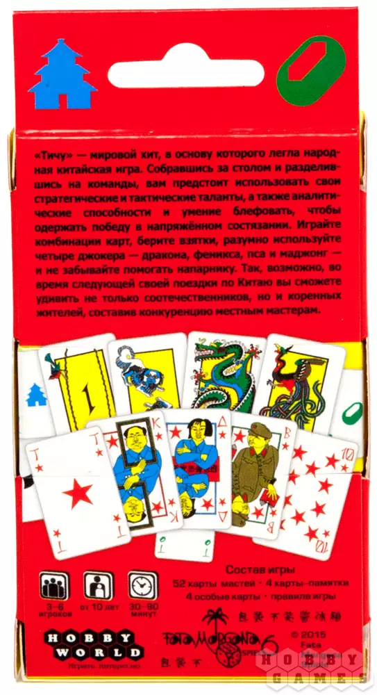 "Тичу" – это народная китайская игра, которая покорила сердца многих любителей настольных игр по всему миру и теперь добралась до России! Поделитесь на две команды и совместными усилиями постарайтесь одержать победу. Спасайте своего напарника, выкладывайте выгодные комбинации, блефуйте, разыгрывайте особые карты - и вскоре вы сможете победить китайских мастеров "Тичу".