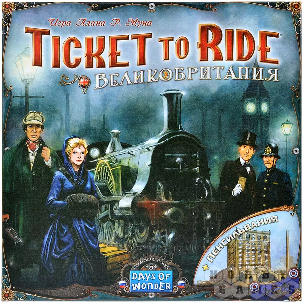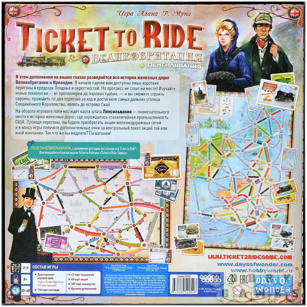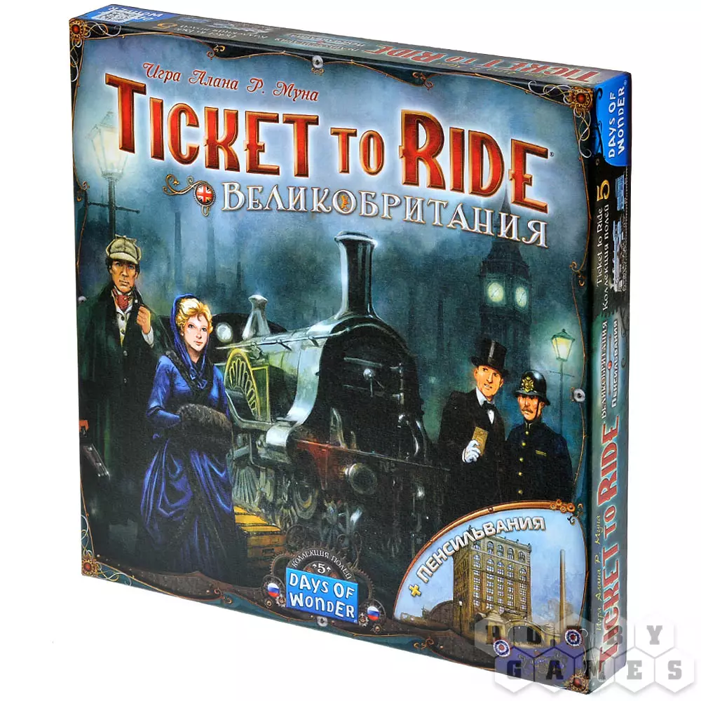 Дополнение "Ticket to Ride: Великобритания и Пенсильвания" откроет вам новые места для посещения. Вы сможете побывать в Туманном Альбионе, от столичного Лондона до самых удалённых уголков Соединённого Королевства и северных островов, проехав через всю Великобританию, – после того, как изучите новые технологии и улучшите свои поезда, конечно же.