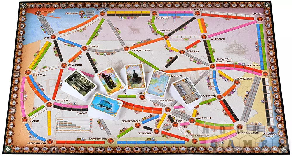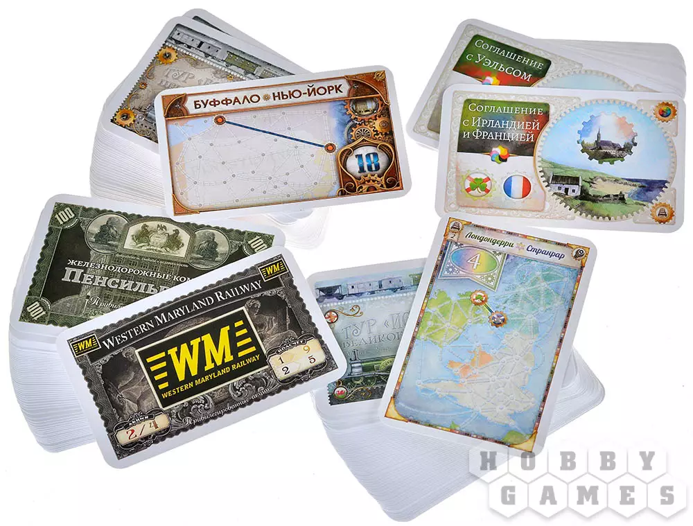 В начале каждый игрок получает карту маршрута, где отмечены два города, расположенные в разных концах карты. Эту карту необходимо держать в тайне! Цель – провести железную дорогу между указанными пунктами. Чтобы осуществить этот грандиозный план, каждый ход игрокам выдаются карты "поездов" разного цвета и карты-джокеры с изображением локомотива, также разрешается брать дополнительные карты маршрутов и выкладывать карты поездов на игровое поле, набирая победные очки. Маршрут может быть проложен любой возможной длины, пока хватает карт одного цвета и вам не мешают противники.