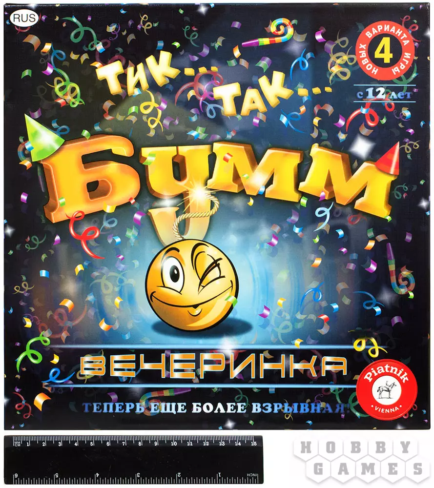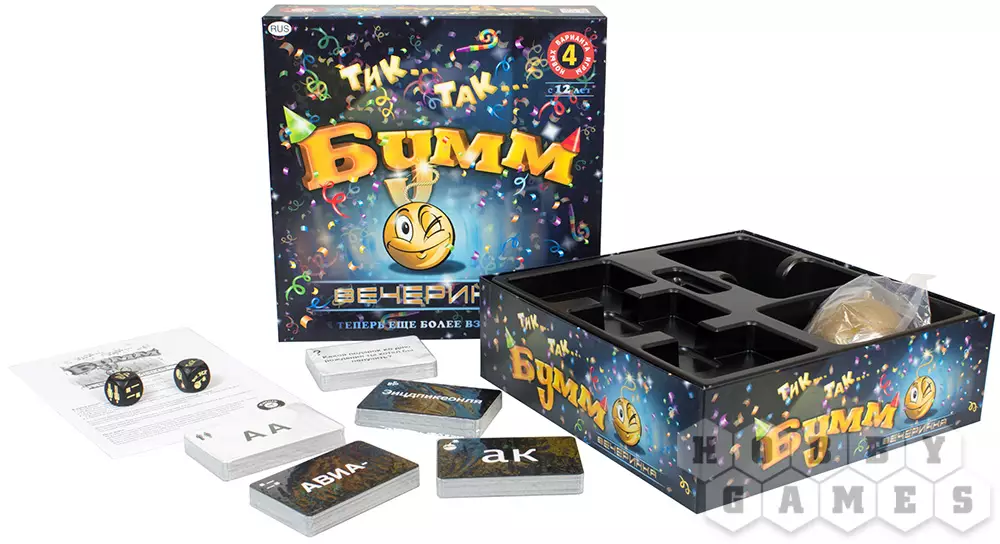 Настольная игра "Тик-так Бумм" широко известна среди игроков разного возраста, она получила престижную награду в 1996 году как лучшая семейная игра, но радует игроков по всему миру и по сей день! В этой специальной версии игры – "Вечеринка" – игра становится ещё более увлекательной и интересной!