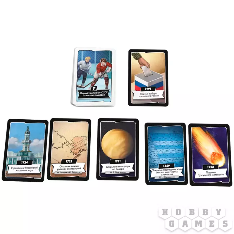 Что было раньше – открытие Третьяковской галереи или падение Тунгусского метеорита? А когда была премьера легендарного балета "Лебединое озеро"? Вместе с игрой "Таймлайн: История России" вам предстоит это выяснить и разобраться, как располагались памятные события истории на ленте времени. Ваша задача проста: первым выложить карты на оси времени. И главное, сделать это в правильной последовательности! Вам предстоит выяснить, насколько хорошо вы знакомы с историей России, а ещё узнать много новых и увлекательных фактов о ней.