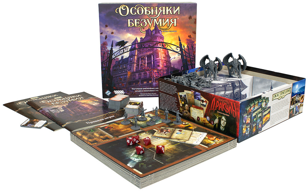 "Особняки безумия" – одна из самых известных мистических настольных игр, сочетающая элементы хоррора, детектива и приключения. Сюжеты разворачиваются во вселенной Лавкрафтовских мифов, где участники берут на себя роли исследователей, оказавшихся в проклятых особняках и других зловещих местах.