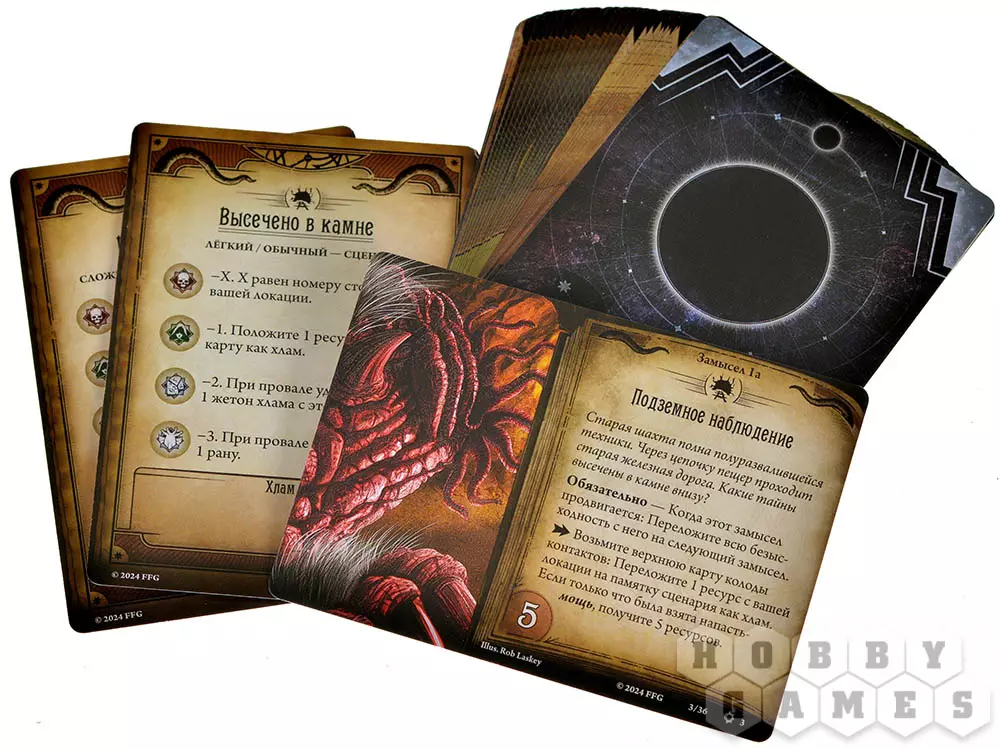 Обратите внимание! Это дополнение включает только тексты и карты сценариев. Карты сыщиков и карты игроков объединены в отдельный набор: