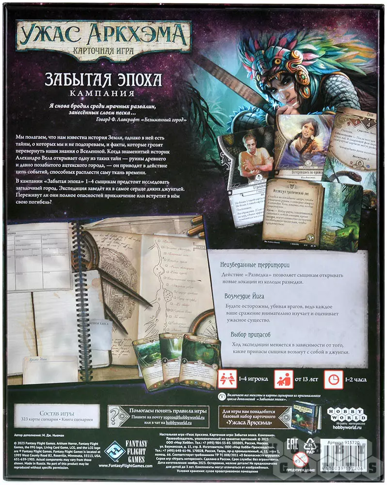 "Забытая эпоха. Кампания" – это новый формат выходившего ранее цикла дополнений, в рамках которого в одной коробке были собраны все 8 сценариев кампании "Забытая эпоха". Исследуйте таинственный город в составе экспедиции, чей путь пролегает через сердце мрачных джунглей! Переживёте ли вы это полное опасностей приключение или это станет ваш последний поход?