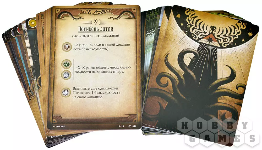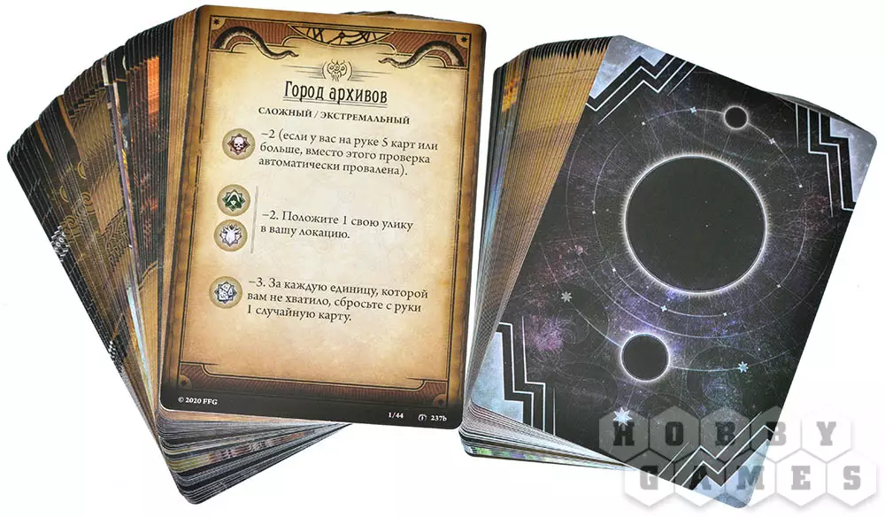 "Ужас Аркхэма. Карточная игра" – это кооперативная Живая Карточная Игра в сеттинге мифов Лавкрафта, в которой 1-2 сыщика (а со вторым набором – 3-4) совместно познакомятся с миром оккультизма, древних богов и тайн, параллельно борясь и с внутренними демонами из своего прошлого.