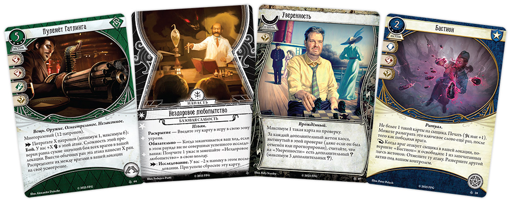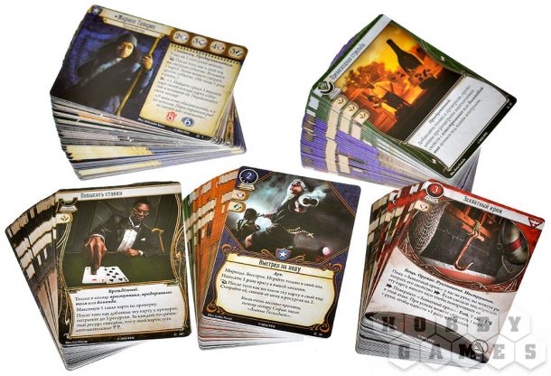 Игроки управляют действиями персонажей посредством своей колоды сыщика. Сценарии ведут кампании, предлагая интереснейшее приключение.