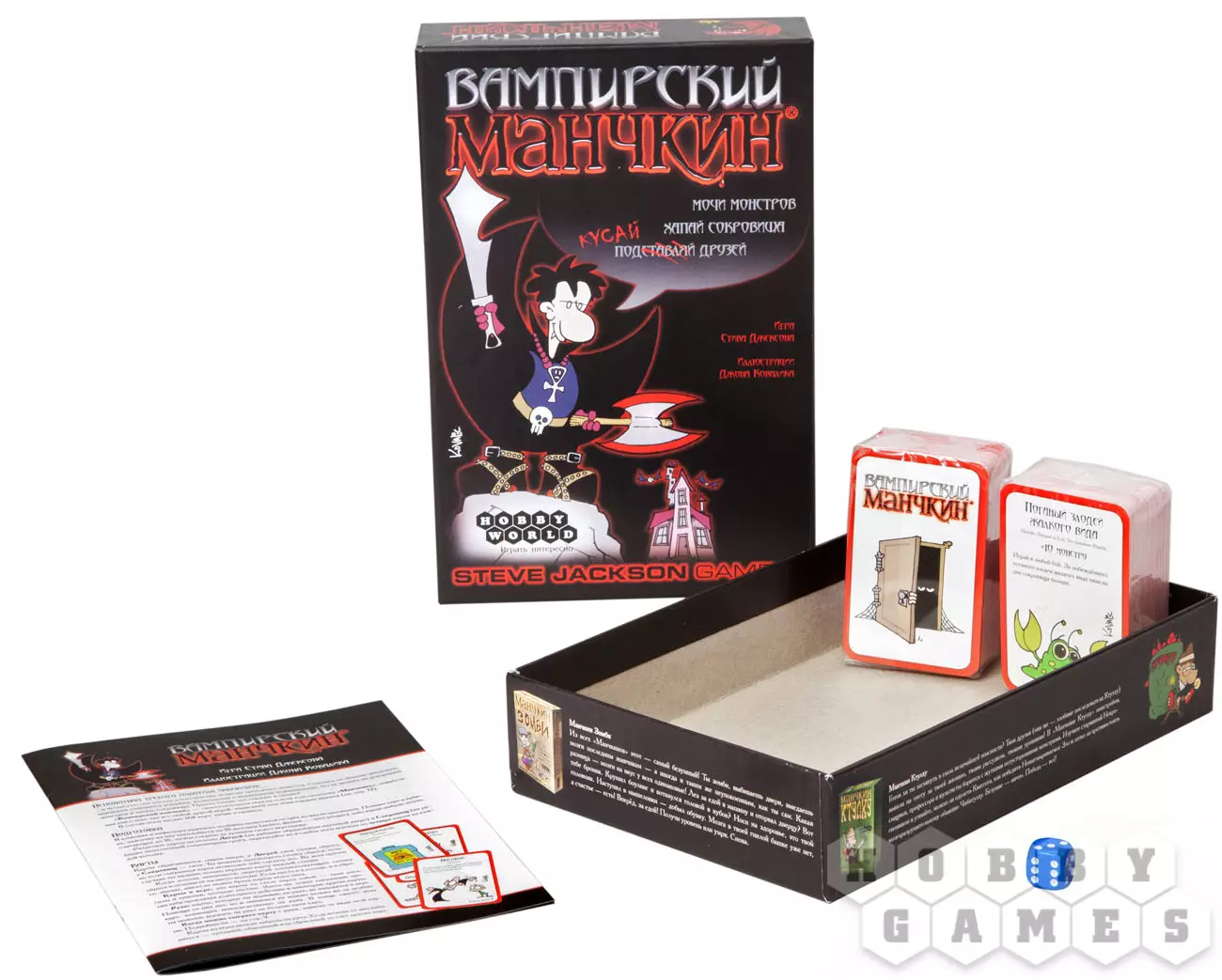 Город окутан холодным туманом и опасные тени мелькают за его пеленой… Лунный свет едва пробивается сквозь облака и где-то воют волки… Кто-то, жаждущий человечьей крови, выходит в такую погодку на охоту… Бегите или прячьтесь, это страшный и ужасный – "Вампирский Манчкин"!