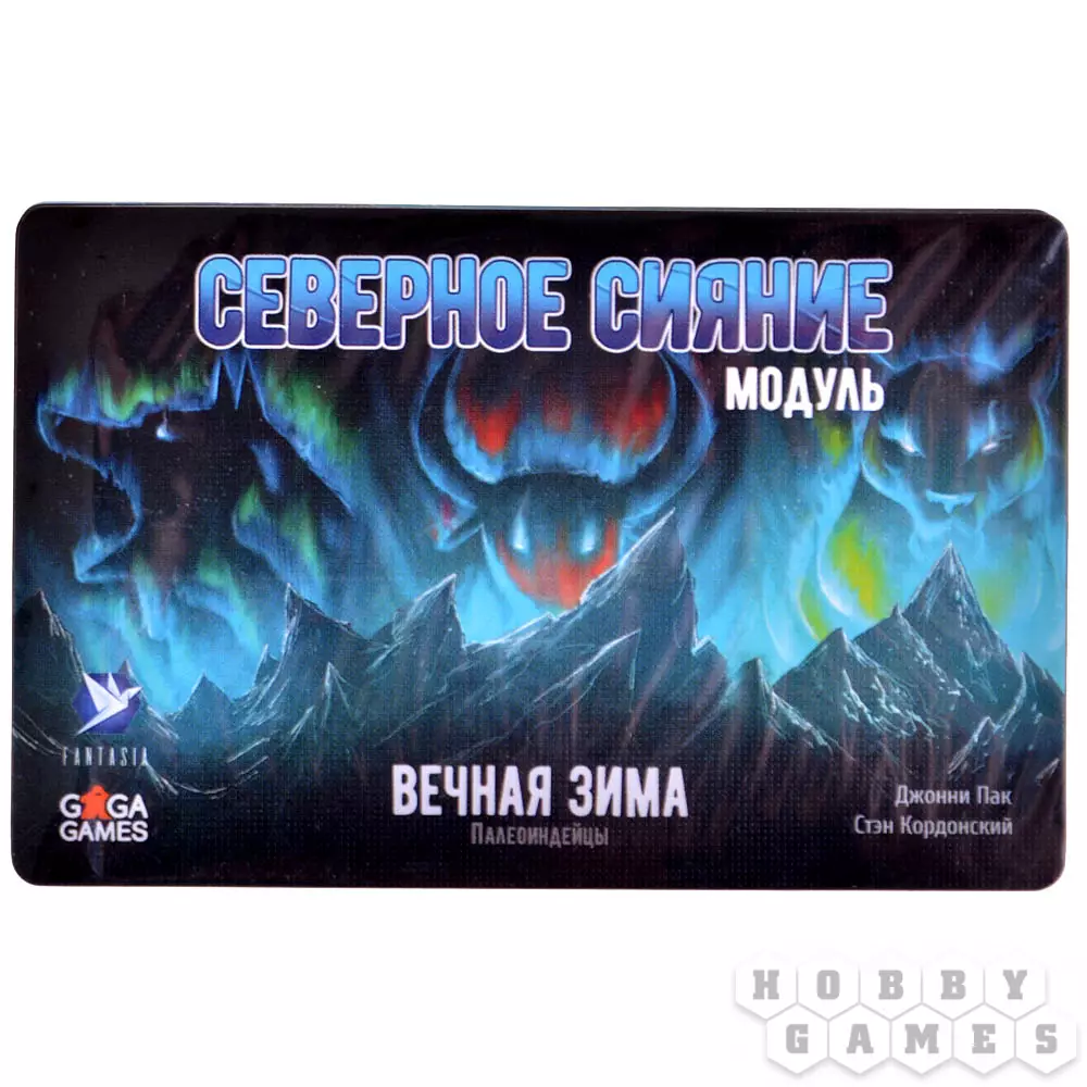 "Вечная зима. Северное сияние" – это дополнительный модуль для игры "Вечная зима: Палеоиндейцы", вводящий уникальные особенности для разных племён. При подготовке каждый игрок получает дополнительную карту северного сияния, эффект которой зависит от выбранного племени. Сыграв такую карту, можно получить определённые преимущества до конца хода.