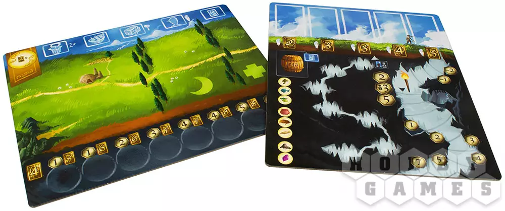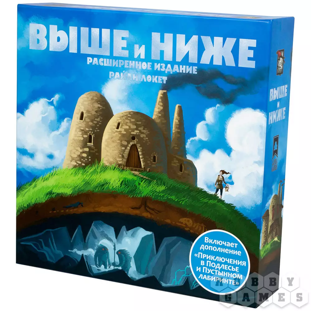 "Выше и ниже" – красивая настольная игра с приятным дизайном, где в распоряжении игроков будут целые деревни с жителями, а задачей каждого будет развивать свой посёлок на поверхности и под землей. Здесь требуются хорошие менеджерские навыки руководства рабочими, где каждый из них уникален и выполняет определённую работу лучше других. Но эта игра является не просто экономическим еврогеймом. Главной и уникальной особенностью "Выше и ниже" является наличие элемента повествования, что очень необычно для такого жанра. Когда снаряжается экспедиция в шахту, начинается настоящее приключение с подробными описаниями и выбором вариантов действий. Если вам удалось пройти все подземные проверки, то награда будет достойной и она приблизит вас к победе.