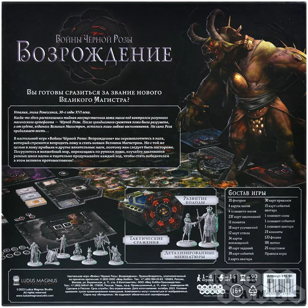 Если вы знакомы с правилами первой версии "Войн Чёрной Розы", то уже заметили, что игровой процесс не претерпел никаких изменений. Единственное значимое отличие от первой части – комнаты ложи: изначально они уже разрушены, а маги смогут их восстанавливать, чтобы способность комнаты стала более эффективной.