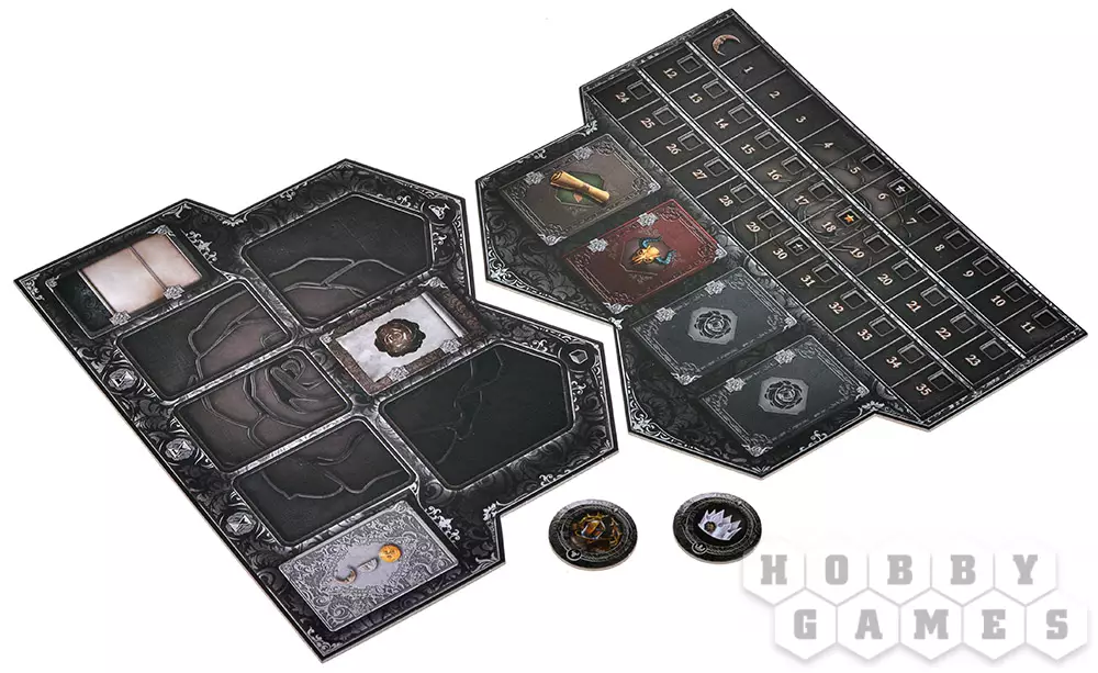 Чтобы определить, кто же станет новым Великим Магистром ложи Чёрной Розы, в конце игры необходимо подсчитать все очки силы. В конце игры к уже набранным очкам силы прибавьте очки за выполненные задания, полученные трофеи, за жетоны активаций разрушенных комнат и корону первого игрока. В случае ничьей после подсчёта всех очков силы, новым Магистром становится претендент, выполнивший больше всех заданий. Если и в этом случае ничья – победитель определяется по количеству собранных трофеев. Но если ничья и в этом случае, то обладатель жетона с короной определяет, кто из претендентов становится Великим Магистром Чёрной Розы.